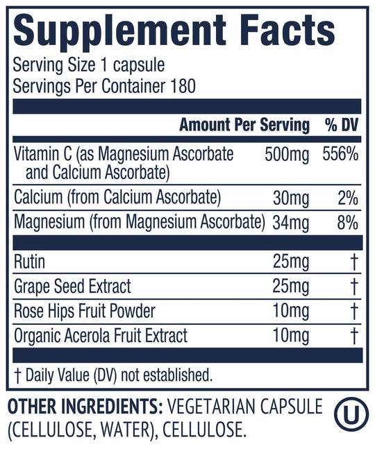 Vitamin C is a necessary component in the synthesis of the structural protein collagen, needed for healthy hair, skin, nails, joint tissues, and strong bones.*
