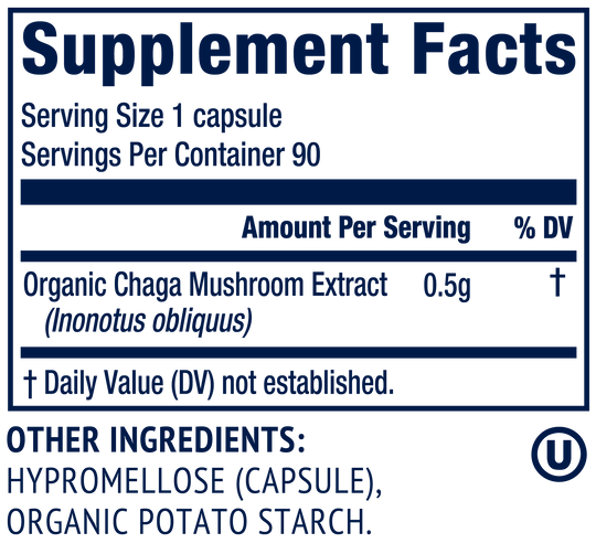 Vimergy Chaga is standardized to the mushroom polysaccharide beta glucan which is known to support immune health.*