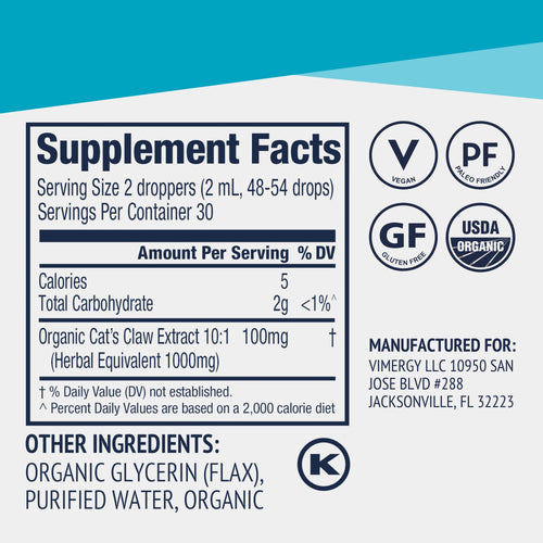 Vimergy Organic Cat’s Claw -- Same clean formula but made with new fresher extract using a proprietary purified water process crafted exclusively for VIMERGY in the USA.