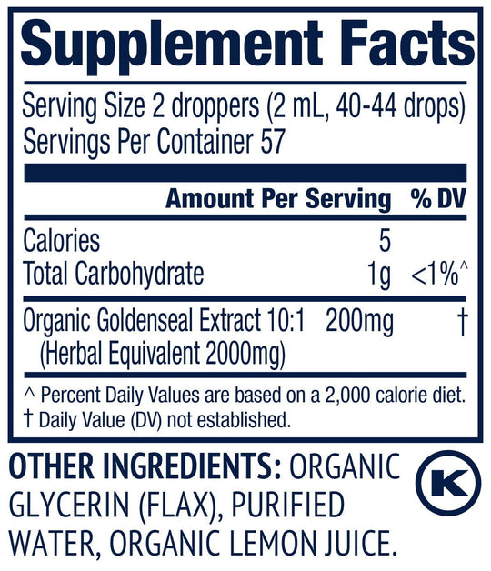 Two dropperfuls deliver the equivalent of 2000mg of whole goldenseal root—every serving, every time.